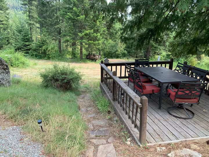 Available October 15th through May 31st, this rustic 1,200 sq/ft cabin sits on 22 private acres overlooking the Pend Oreille River and Hoo Doo Mountain. Located less than 10 minutes from downtown Priest River, 30 minutes to Sandpoint or Priest Lake, and about 45 minutes to Silverwood, the home offers both privacy and convenience. The main level includes a living room, kitchen, dining area, bathroom with shower, and pantry/utility space. Upstairs are two bedrooms, each with queen beds and walk-in closets, with a claw-foot tub bathroom attached to one of the rooms. Heating is provided by a pellet stove, with electric heat available for supplemental use. High-speed Starlink internet is included for $120 per month. The property offers plenty of outdoor space, including room for RV or camper parking with access to electrical and septic hookups, though the attached shop, garage, and wood shed are not included in the rental. Woods Road leading to the property is steep with a grade up to 10%, and a 4x4 vehicle is required for winter access. Wildlife such as deer, elk, and moose are often seen in the surrounding area, making this a true mountain cabin experience. Rent is $1,795 per month plus $120 for Starlink internet. Garages are excluded from rental.vAll Freedom Path Property Management residents are enrolled in the Resident Benefits Package (RBP) for $55.00/month which includes liability insurance, credit building to help boost the resident’s credit score with timely rent payments, up to $1M Identity Theft Protection, HVAC air filter delivery (for applicable properties), move-in concierge service making utility connection and home service setup a breeze during your move-in, our best-in-class resident rewards program, on-demand pest control, and much more! Ask us about our Deposit Waiver Program.