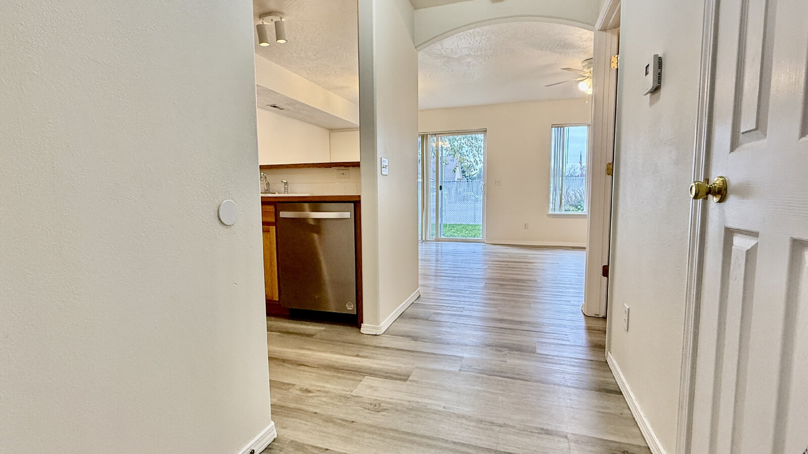 Welcome to 4859 N Jasmine Ln in Coeur d’Alene! This bright 3-bedroom, 2-bathroom townhome offers 1,000 sq ft of comfortable living with an attached garage and private fenced backyard. The main level features updated LVP flooring, an open-concept layout, and a cozy gas fireplace. The kitchen includes ample cabinetry, a breakfast bar, and full appliance package. Upstairs offers a spacious primary suite with walk-in closet, two additional bedrooms, and washer/dryer included. Enjoy a private patio, low-maintenance yard, and a convenient location close to shopping, dining, and schools. Residents are enrolled in Freedom Path’s Resident Benefit Program ($55/mo) with renter's insurance, furnace filter delivery, credit reporting, identify theft protection and more. Tenant responsible for heat and lights. $100/mo Common Area Landscaping fee included Water/Sewer/Trash. Pets considered upon approval.